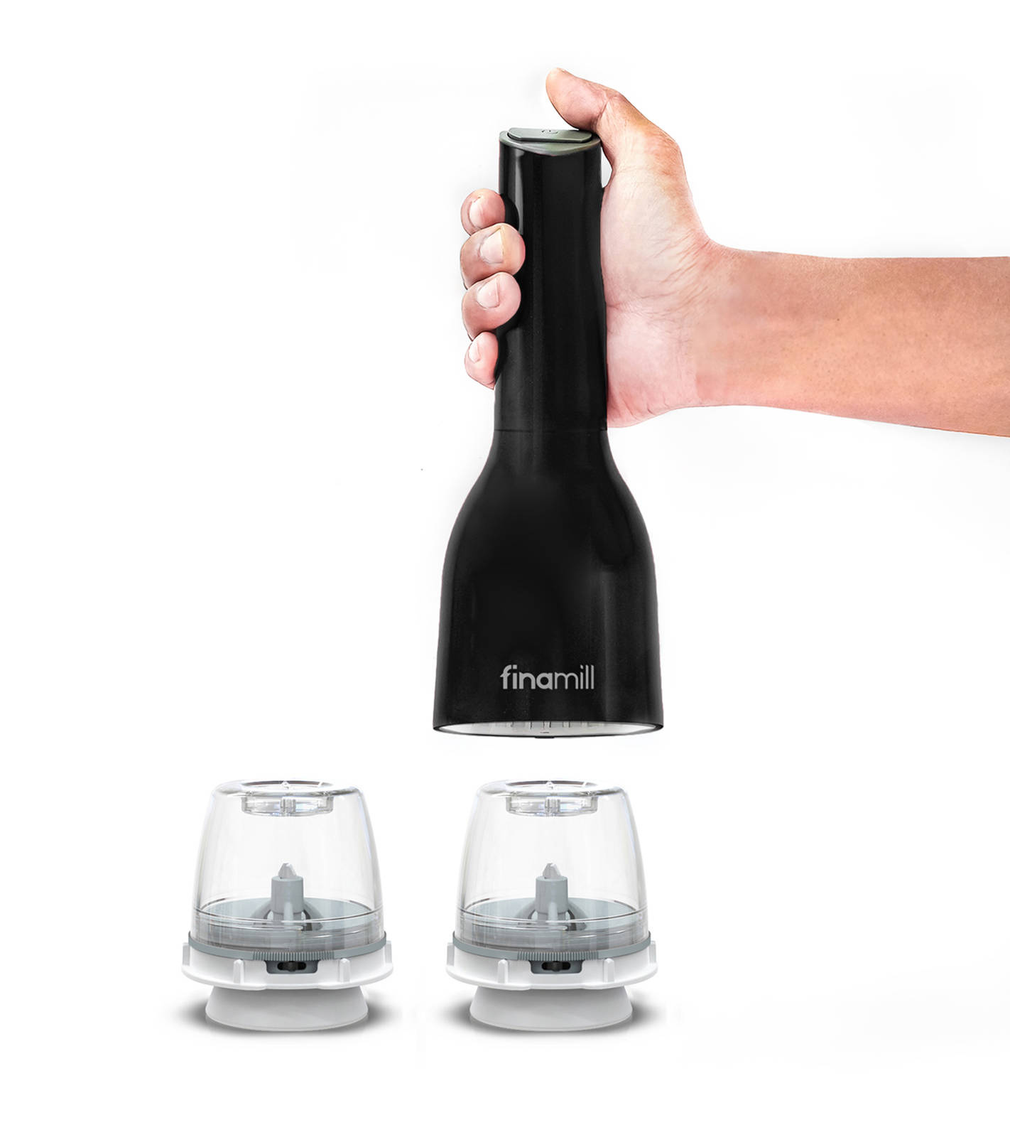Zakochaj się na nowo w świeżo mielonych przyprawach! Dzięki elektrycznemu młynkowi FinaMill z wymiennymi wkładami możesz mieć szeroką gamę przypraw i ziół i na wyciągnięcie ręki.